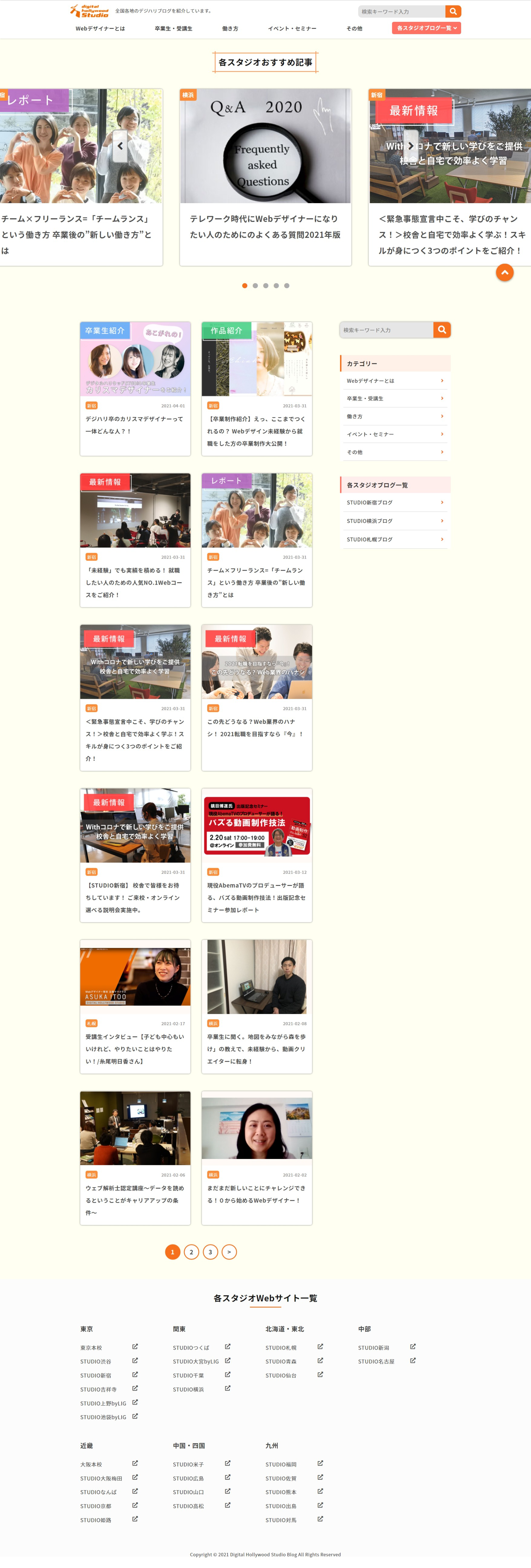 WEBデザイン制作初心者にもわかりやすいサイトにするため記事も写真と文字のバランスを調整してわかりやすく またカテゴリーを2つ作成することによってWEBデザインの勉強の仕方、デジハリがどのようなスタジオなのかを伝えられるように工夫しました。